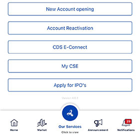 Launch the app and navigate to Our Services → "Open an account" to begin the digital onboarding process.